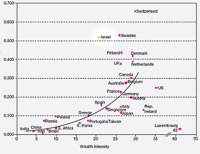 במקומות הראשונים ברשימה נמצאות שוויץ ושוודיה. אחרי ישראל ממוקמות מדינות כמו פינלנד, דנמרק, בריטניה, הולנד, אוסטרליה, ניו-זילנד ארצות הברית וקנדה. הנתונים נאספו מפרסומי מחקרים מדעיים במהלך 21 שנים (בין 1981-2002), ועלה מהן כי במקומות האחרונים נמצאות הודו, סין, איראן וברזיל.