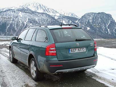 כצפוי, הסקאוט בולטת בפגושיה השחורים והאגרסיביים, עם מה שנראה כמגיני גחון. מאחור ומימין התווסף אפילו כתם שחור כדי לדמות פתח נוסף למפלט (שנמצא רק משמאל). פגושים חדשים האריכו את המרכב בתשעה מ"מ, מרווח הגחון גדל בארבעה ס"מ משמעותיים ל-18 בסך הכל, והתוצאה מרשימה. דווקא מהצד השינוי פחות מורגש. אי אפשר לפספס חישוקי "17 חדשים או צמיגי 225-50, אבל מאידך חיפויי הפלסטיק מרחיבי-הכנפיים (ב-15 מ"מ) אינם בולטים דיים, ממש כמו פסי החיכוך. וזה אומר שמהצד, היא פשוט נראית יותר מדי כמו סטיישן רגיל.