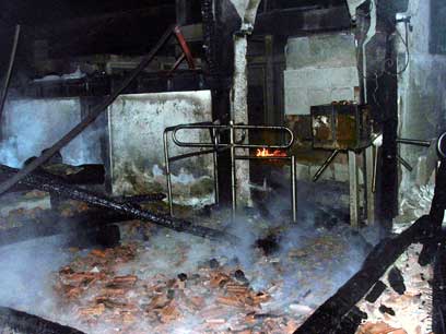 הפונדק השרוף. הכבאים חיפשו תנינים ונחשי ענק (צילום: יואל מור)
