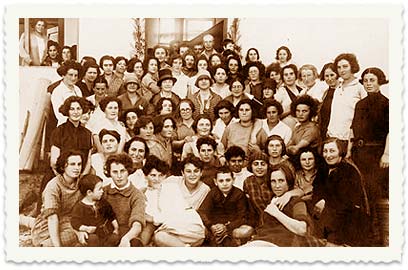 תצלום קבוצתי של המחזור הראשון בביה"ס החקלאי בנהלל עם המנהלת חנה מייזל שוחט.
