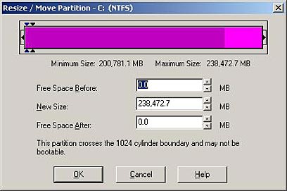 בחלון שתקבלו תוכלו להקטין את הכונן הנוכחי בעזרת העכבר או להקליד את הגודל הרצוי.