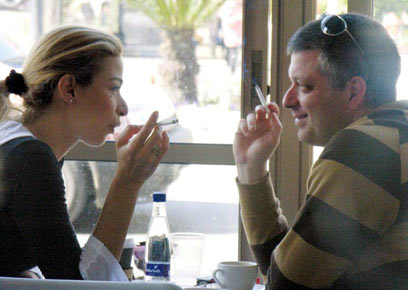 את יודעת מה זה אומר כשנושפים עשן בעיניים? אורנה מפנקת את שלומי (צילום: רועי חביב)