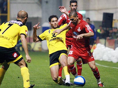 שכטר גולש לרגליים של טועמה (צילום: אלי אלגרט)