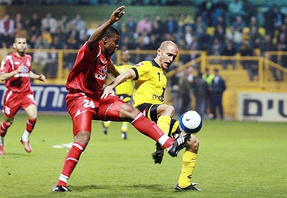 אוגבונה רגע לפני השער שכבש. בקבוצה מרוצים מהניגרי (צילום: אלי אלגרט)