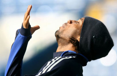 דרוגבה באימון המסכם, אחרי שפגע בו כדור תועה (צילום: איי אף פי)