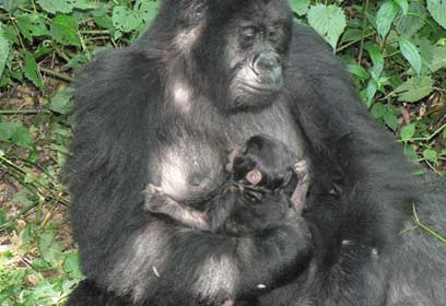 למרות האירועים הטראגים באיזור, החודש היתה סיבה למסיבה בשמורת הטבע. לידתה של גורילת הרים קטנה, בת חדשה למשפחת "רוגנדו", המונה 12 גורילות, באיזור מיקאנו. "הגורילה זכתה לשם "נדזה", על שם מנהיג שבט מקומי שנפטר בחודש שעבר בקונגו והפקחים החליטו להעניק לה את שמו", מגלה ניופורט. "אמה של נדזה, ספארי, נתונות כעת תחת שמירה הדוקה ביותר של גורילות כסופות הגב במשפחה, כך שהדבר קשה וכמעט בלתי אפשרי להתקרב אליהן. כרגע אני יכולה לדווח כי נדזה יונקת בהצלחה וספארי נושאת אותה עימה לכל מקום בשעות היממה".