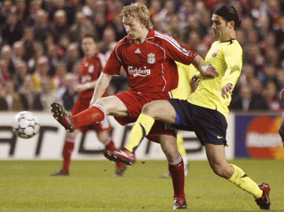 רפא מרקס מברצלונה נלחם בדירק קויט מליברפול (צילום: איי פי)