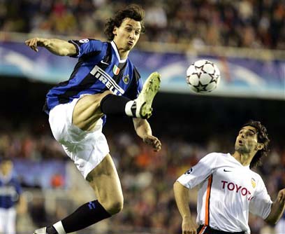 רוברטו אז'אלה מביט בפליאה בזלאטן איברהימוביץ' (צילום: רויטרס)