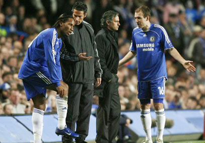 רובן ודרוגבה מתייעצים עם מוריניו בדרך לרבע הגמר (צילום: רויטרס)