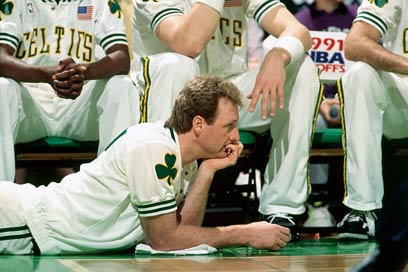 הנאחס של הסלטיקס הוא שכל הפסד נאמד תמיד ביחס לימים של לארי בירד. מכירים את הכתוביות על המסך שמופיעות במשחקים של האן.בי.איי? אז כשהגיעה מחצית העונה ובוסטון הפסידה עוד משחק, עלתה על המסך הכתובית הבאה: "בוסטון סלטיקס - 13 הפסדי בית העונה. יותר מאשר בכל 13 העונות של לארי בירד כשחקן פעיל בקבוצה". רק כשנתקלים בנתונים מהסוג הזה אפשר להבין עד כמה גדול השבר, ועד כמה רוחו של בירד ממשיכה ללוות את הסלטיקס עד היום.