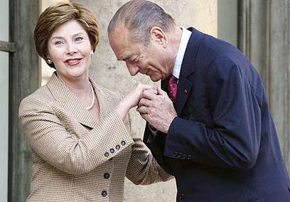 שיראק עם לורה בוש ב-2003. התנגד למלחמה בעיראק (צילום: סי"צ)