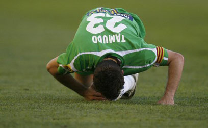 ראול טאמודו על הדשא ב'אל סארדינרו'. 1:1 לפני חיפה (צילום: איי אף פי)