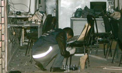 חוקר משטרה בבית הקפה שבו היה הפיצוץ בקזבלנקה (צילום: רויטרס)