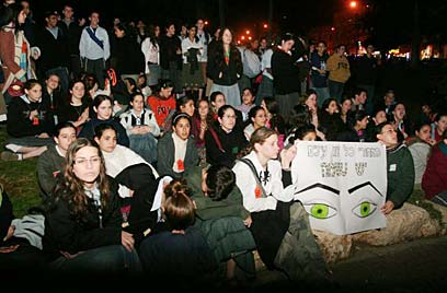 משמר ההוסטלים בפעולה. עצרת מחאה בראשון-לציון (צילום: עופר עמרם)