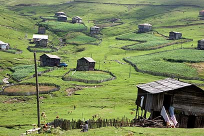 משפחות שלמות עולות בדרכים להרים הירוקים. שם, בבקתות העלובות, הן מעבירות את הקיץ בחביצת גבינות נהדרות מהפרות המשפחתיות המשתזפות לאורך כל כבישי גיאורגיה. שם הם יושבים חבורות גברים וחבורות נשים, רובן לבושות שחור, בכניסה לכפרים וחולמים יחד. שם הם מציגים בצדי הדרך את מרכולתם הצנועה: פירות נהדרים, לחם מתוק, תירס חם, ערסלים ארוגים מחבל גס, שמן, יינות וחיוך רחב מפה מלא שיני זהב.