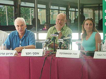 סמאשנובה בחברת יו"ר האיגוד אסף חפץ ופרומן (ערן קמינסקי)