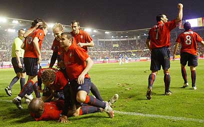 אוסאסונה חוגגת העפלה היסטורית לרבע הגמר (צילום: איי פי)