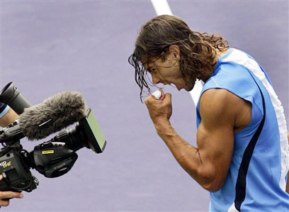 רפאל נאדאל חוגג מול המצלמות, הלילה באינדיאן וולס (צילום: רויטרס)