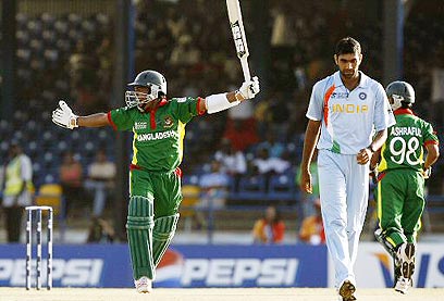 סאצ'ין טנדולקר, הכוכב הגדול, צבר רק שבע ריצות, וירנדר שוואג הפותח נפסל אחרי 2 בלבד ודוני לא צבר אפילו ריצה אחת. רק סוראב גנגולי הוותיק הצליח להישאר מספיק זמן כדי להגיע ל-66. מושרפה מורטזה מבנגלדש עשה את מירב הנזק כשהשיג ארבעה וויקטס (ארבעה חובטים פסולים). בנגלדש הגיעה ליעד - 191 ריצות - תשעה כדורים לפני סיום 50 האוברס ואם היא היתה רוצה היא היתה משיגה את המטרה הרבה לפני כן. מושפיקר רחים (56 ריצות) סקיבל חסן (53) וטמים איקבל (51) בלטו באגף החובטים.
