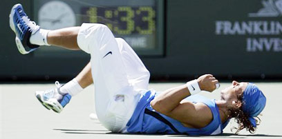 נאדאל מאושר אחרי הניצחון בקליפורניה (צילום: איי פי)