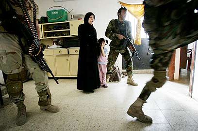 צמודה לאמא. אם ובתה, וחיילים עיראקים שמבצעים חיפוש (צילום: סי"צ)