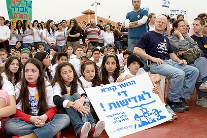 נועם שליט ובני נוער מפגינים בנהריה (תצלום: ודים דניאל)