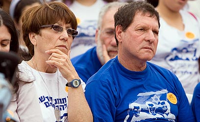 שלמה ומיקי גולדווסר במהלך העצרת (תצלום: ודים דניאל)