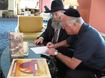 קשטן והרב גלויברמן שולחים מכתב לרבי מילובביץ' (צילום: מ. מאמין)