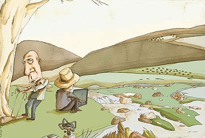 וכך אתה מוצא עצמך נגרר עוד מאה מטר ועוד חצי קילומטר, עוד עשר דקות ועוד חצי שעה, ובסוף נשבר ומתיישב על קצה אבן לא ממש נוחה באמצע שדה קוצים. הנוף שנשקף מולך הוא של אתר בנייה חדש, בלי צל ובטח בלי משענת לגב. עם קצת מזל, עוד רגע תגיע משפחת מטיילים קולנית שהתעקשה בדיוק כמוך להמשיך לחפש, ותתיישב מטר מהאבן שלך.