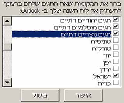 3. סמנו את האופציות חגים יהודיים דתיים וישראל. אם אתם עובדים עם אנשים מארצות אחרות, זו הזדמנות לסמן גם את החגים שלהם. אשרו, סגרו את התוכנה והפעילו אותה מחדש.