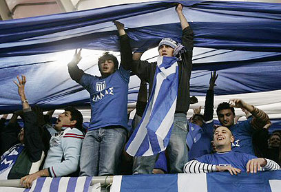 אוהדי נבחרת יוון חוגגים. הנבחרת חזרה לנצח (צילום: רויטרס)