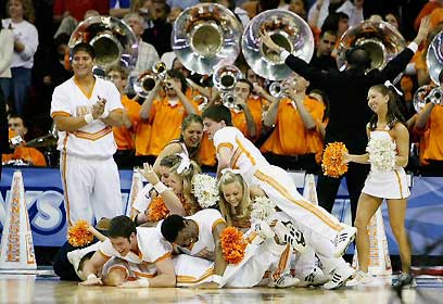 המעודדות של טנסי חוגגות עם התזמורת. גם הן אלופות (צילום: איי פי)