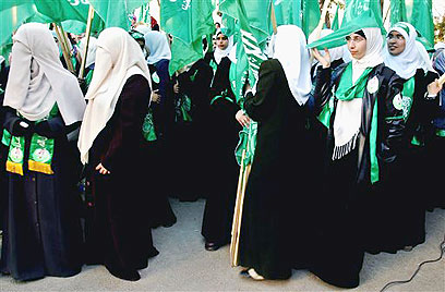 תומכות חמאס בביר-זית (צילום: איי.פי)
