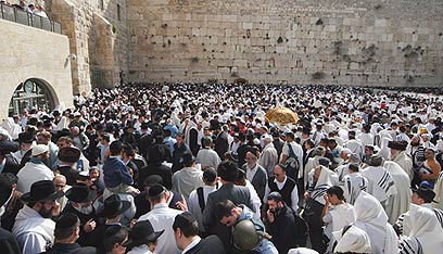 אלפי המשתתפים בכותל (צילום: גיל יוחנן)