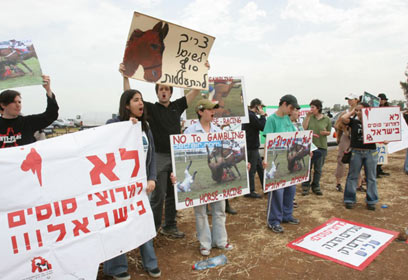 עשרות מחו מול ההיפודרום: "הסוסים רצים למותם"