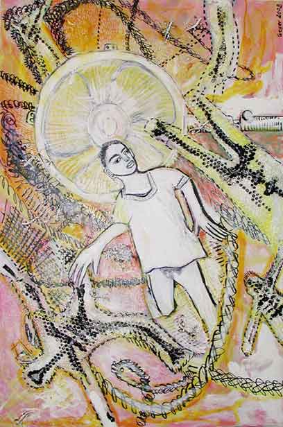 יסמין גרשוני-גאיר, חמסין, אקריליק וחומר אריזה פלסטי, 2003