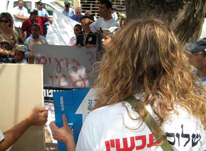 פעילי שלום עכשיו מול תושבי שדרות (צילום: טל אביטן)