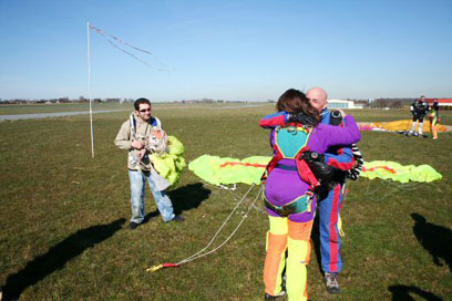בחטיאר והמדריך, מתחבקים אחרי הצניחה (צילום: סי"צ)