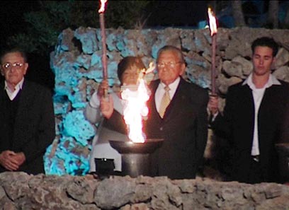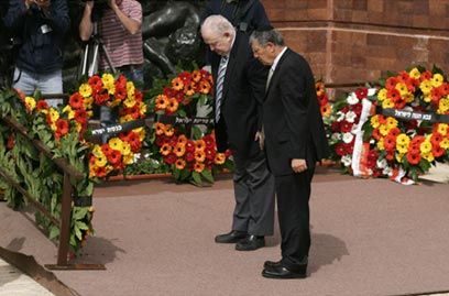 אבנר שלו ויוסף (טומי) לפיד בטקס ב"יד ושם" (צילום: דודי ועקנין)