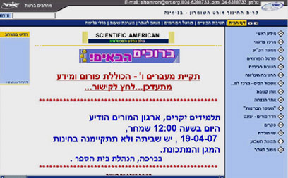 עמוד השער של בית הספר אורט השומרון בנימינה
