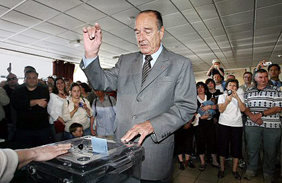 מפנה את הדרך. שיראק מצביע בקלפי (צילום: סי"צ)