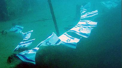 הצוללנים עיטרו את הספינה הטבועה בדגלונים (צילום: אלעד רחמילוביץ')