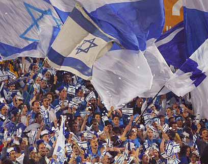 שמחה ביציע המערבי בר"ג. "צריך שם משקפת" (צילום: רויטרס)