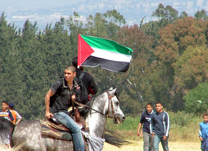 דגל פלסטין בעצרת בלג'ון
