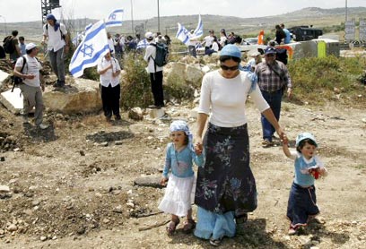 העצרת בחומש. צועדים דרך כפרים ערביים (צילום: רויטרס)