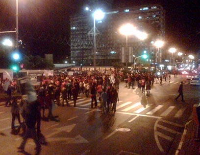 הסטודנטים צועדים לכיכר רבין (צילום: מורן זליקוביץ')