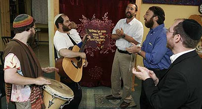 שירה חדשה: לא מביאים חזנים מבחוץ - הם מגיעים לבד. אלינו מגיעים בעיקר תלמידי הרב קרליבך, מי באמת צריך חזנים מבחוץ כשאחד מחברי הקהילה הוא אהרון רזאל?