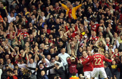 מחכים לגיא אסולין? וווין רוני והקהל באולד טראפורד (צילום: איי פי)