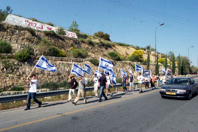 המפגינים על הדרך מירושלים לתל אביב (צילום: גיל יוחנן)