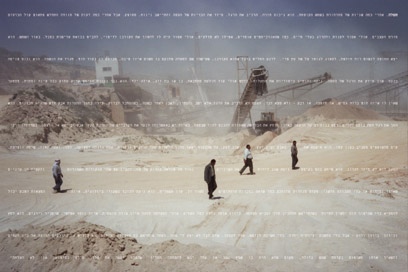 הצילום של ידעיה הוא של נוף עם אנשים. על מצע העבודה מתהווה דיאלוג בין התמונה לטקסט שעל פניה. יותר מבעבודות קודמות שלו, עולה השאלה אם הטקסט חזק יותר והתמונה מאיירת אותו או שנוצר היפוך והמילים הופכות לקווים ונקודות על המצע טעון המשמעות של התמונה. אין לזה תשובה חד משמעית וזה נתון, אולי, לאופני ראייה של צופים שונים. מה שבטוח הוא שזו עבודה שההקשר הפוליטי והדוקומנטרי שלה הוא נתון יסוד, כמו רגע הצילום, ומתוכם היא יוצאת אל הווה מתמשך ספרותי.